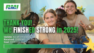 Thank you! We deeply appreciate the generosity of the RMI family – so many of you responded to our end of the year call to action. We set an audacious goal of raising $100,000 to help us meet our immediate ministry needs at the end of the year. God provided and prompted His people to give $109,903! Praise the Lord!